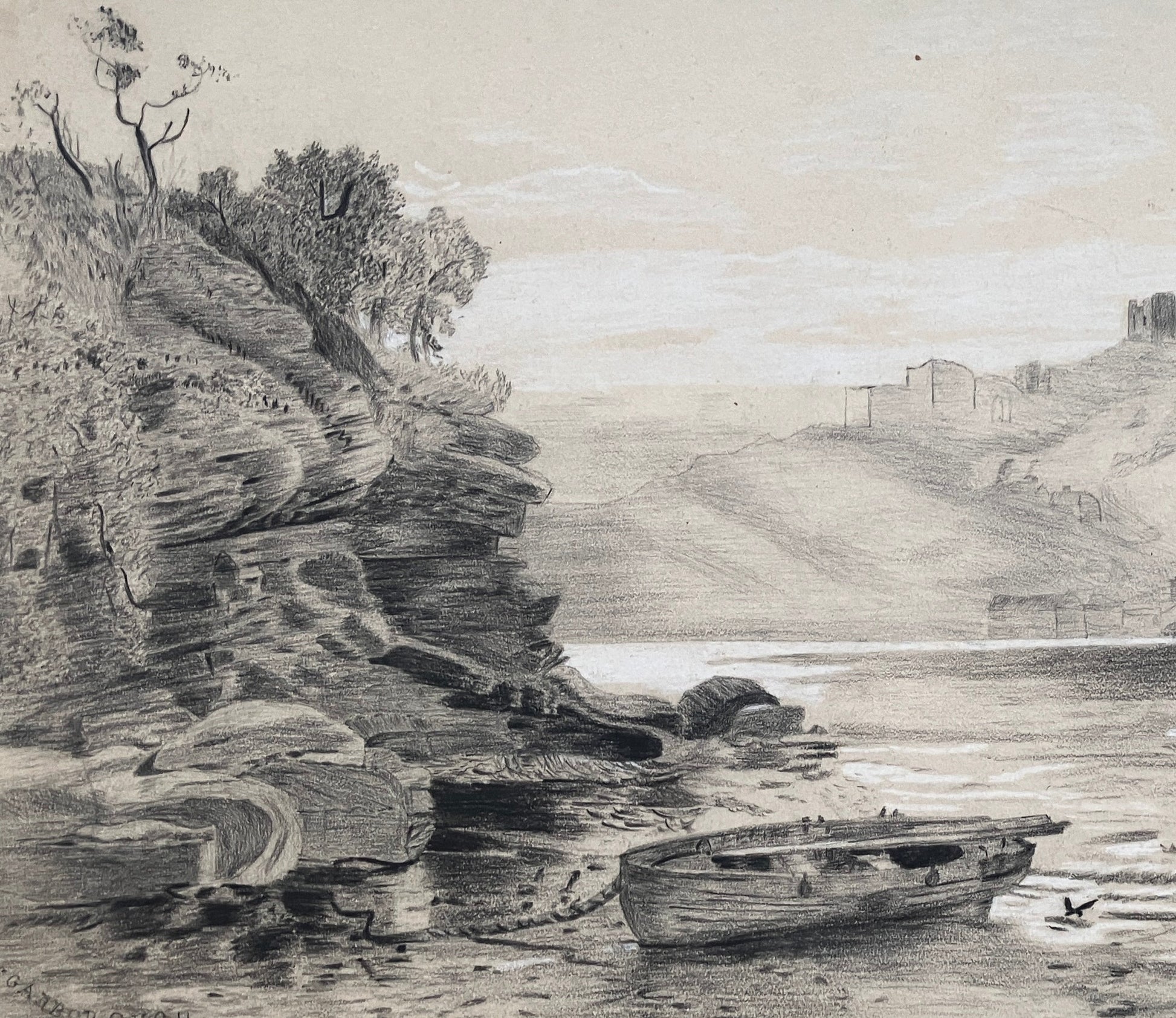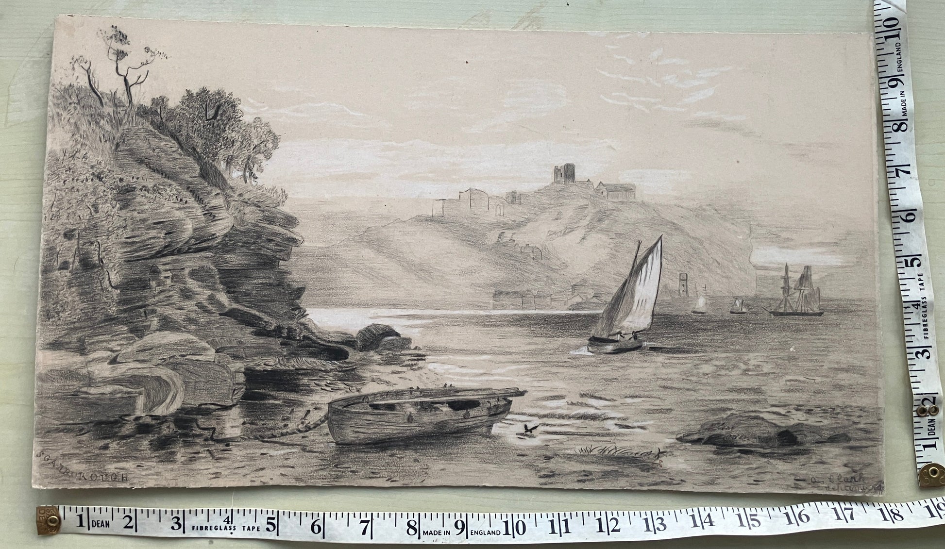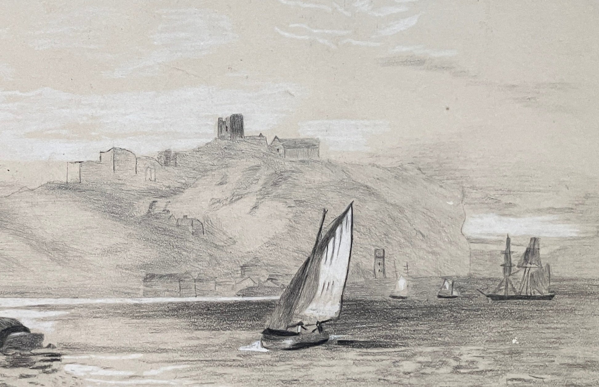 Scarborough Sailing, from South Bay – the ruin of Scarborough Castle in distance – A Clark