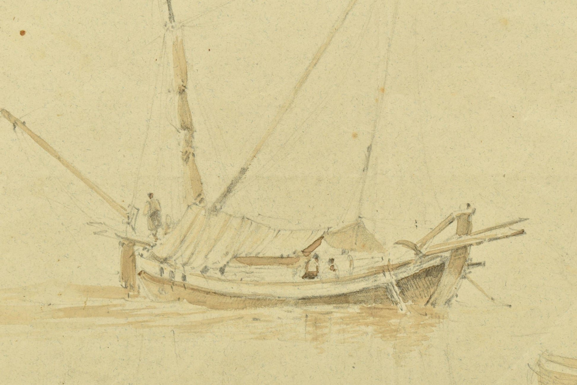 Chinnery planned all his works in great detail. Each picture began as preparatory drawings in notebooks or folded A3 like this one. His studies were made in pen and ink wash over pencil, few of which have survived.