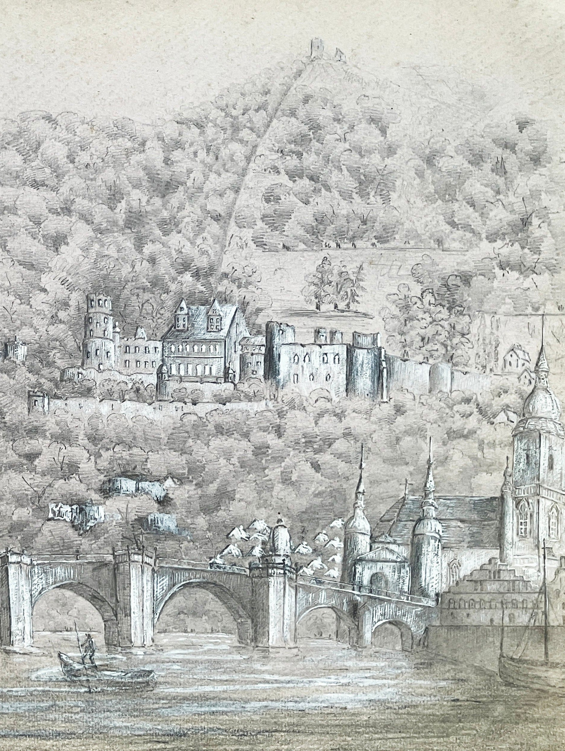 Heidelberger from the Rhine – pencil and chalk on paper ~