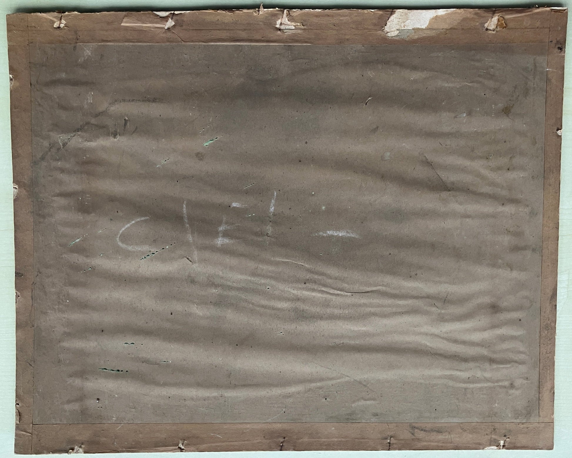This etching has been removed from inside an old frame that was damaged. The original etching has had the right quarter-side removed before being mounted, almost certainly because the owner felt the entire scene's 60cm-width was too much for their personal hanging or, less likely, they preferred the left-sided crop.