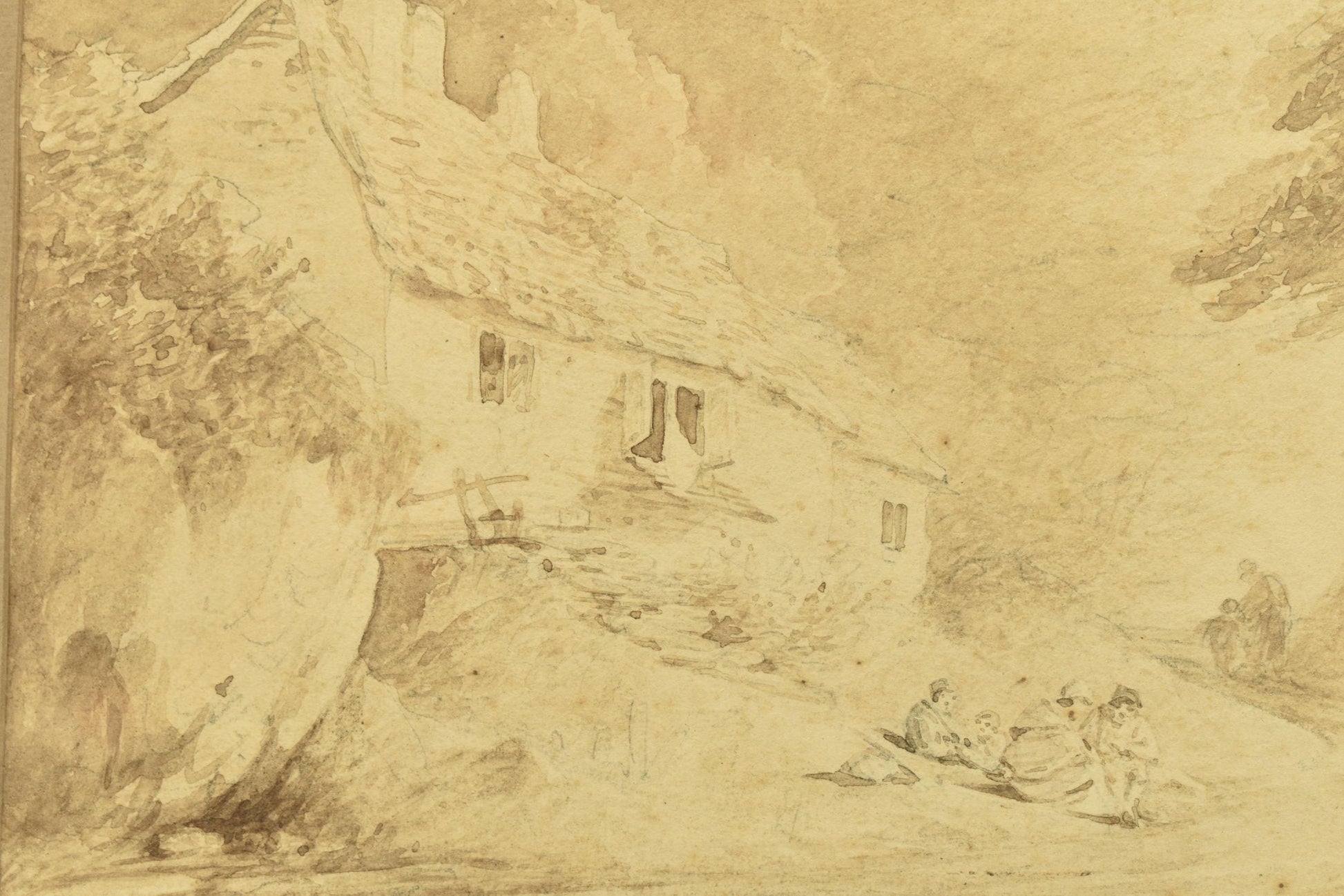 Circle of William Payne (1755-1834) – A Family Outside Cottage, ink wash on paper